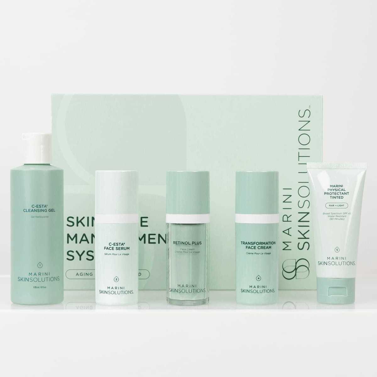 パルミチン酸アスコルビル(角質層に浸透しやすい脂溶性ビタミンC)、ジメチルアミノエタノール(皮下の筋肉を引き締めるアセチルコリンの前駆物質)、オールトランスレチノール(肌に馴染みやすいレチノールで塗布すると酵素と接触し、レチノイン酸に変換される)を組み合わせ、日本人の繊細な肌に合わせた化粧品です。「スキンケアマネジメントシステム(SCMS)」に則り、5つのステップを順番に使う基本シリーズがベースとなっています。さらに、シミ・しわ・くすみ・たるみ・ニキビ・赤みなどの悩みに応じてポイントケアを追加することができます。